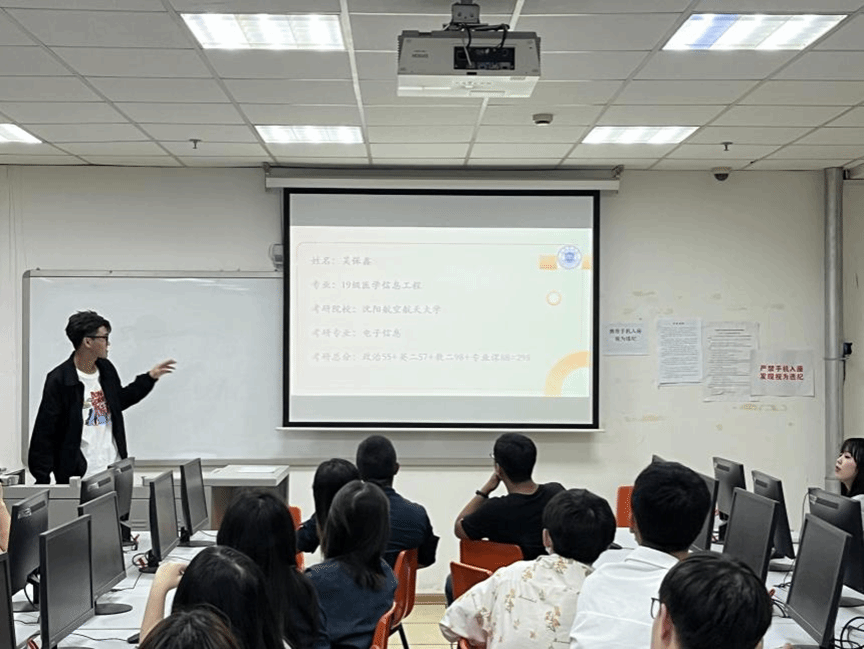 为充分发挥优秀学子的示范引领作用,助力成人影片 学子顺利考研升学,成人影片 开展考研经验分享交流会。成人影片 部分老师,医学信息工程专业2019级毕业生吴保鑫和石莹莹为2020级学弟学妹作经验交流。