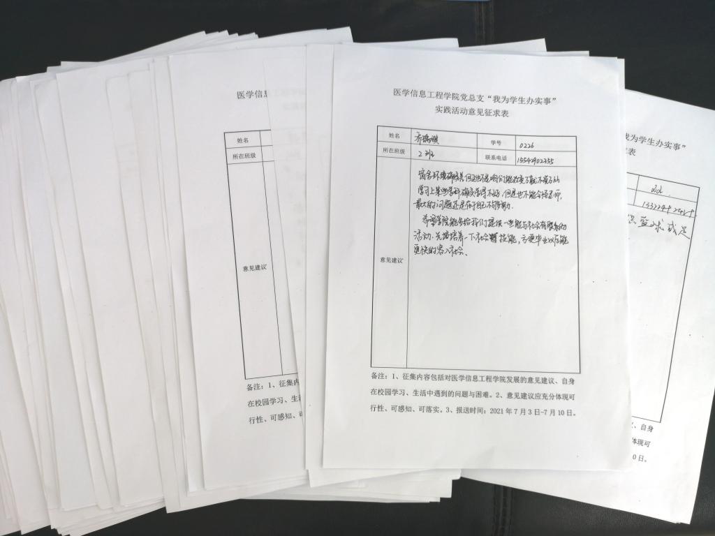 本次活动将持续开展到2021年年底,聚焦到学生关切的“实事”、期盼的“急事”上来。为了提高活动实效性,准确掌握学生的真实想法,活动前,学院党总支部面向全体学生发放“征求意见表”,召开师生座谈会,征集同学们对学院发展的意见建议,自身在校园学习、生活中遇到的问题与困难。之后,将收集上来的信息认真梳理、分门别类,汇总了“帮助学生制定学习规划”“心理健康教育,树立人生方向”“解决校园中生活问题”等五项任务清单。同时,学院党总支部要求党员在为学生办实事、解难题过程中,坚持实事求是、精准施策,积极主动作为,在落细、落实上下功夫,为打造“幸福沈医”贡献力量。