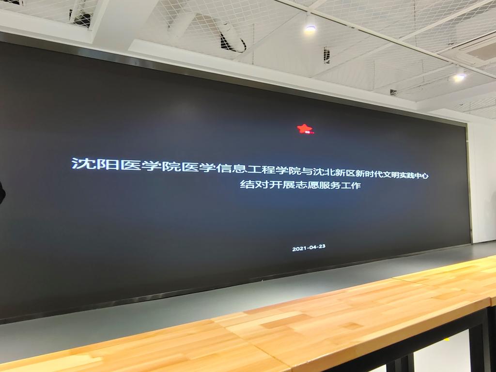 师生志愿服务队一行赴沈北新区新时代文明实践中心,就双方结对开展志愿服务工作进行对接。对接会在实践中心多功能厅举行,实践中心工作人员与会。