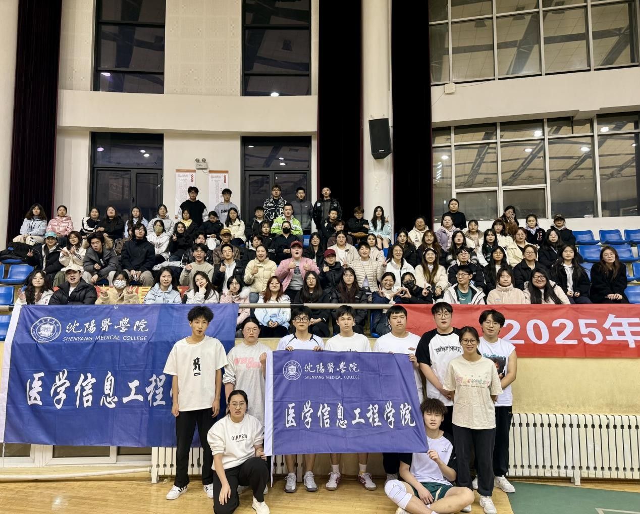 比赛期间,学院共青团组织积极营造浓厚的赛事氛围。参赛队员们每一次发球、接球、传球和扣球,都展现出他们对胜利的渴望和永不言败的决心。面对强劲的对手,队员们毫不畏惧,积极调整战术,以灵活多变的进攻和坚如磐石的防守,为观众带来一场场激动人心的比赛。看台上,各年级同学们整齐有序地就座,组成了气势磅礴的助威方阵。同学们齐声呐喊为参赛队员加油助威,为场上队员注入源源不断的精神动力,充分展现出学院学生团结一心的精神风貌