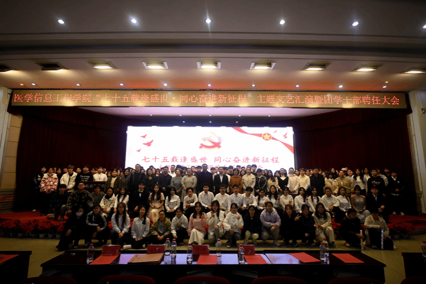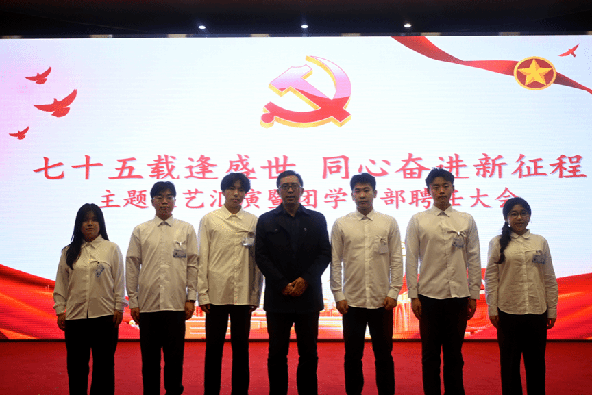 在图书馆报告厅举办了“七十五载逢盛世,同心奋进新征程”主题文艺汇演暨团学干部聘任大会。