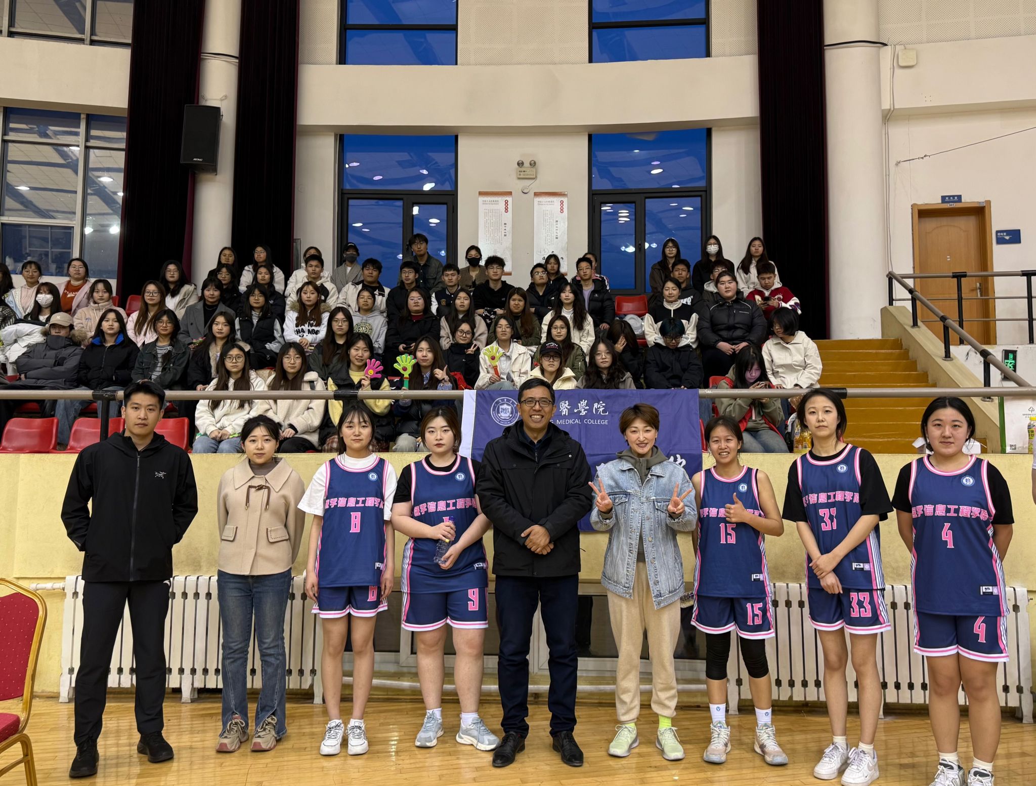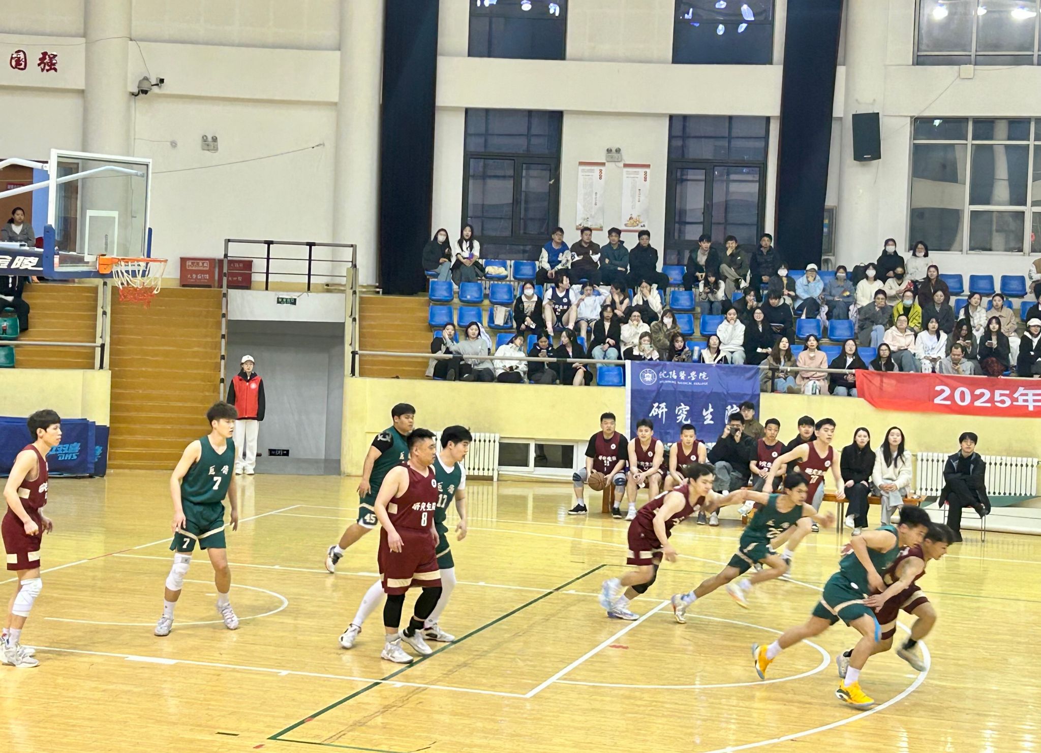 在前天晚上女篮的首场比赛以及今晚男篮的首赛中,队员们表现出色。面对实力相当的对手,男篮队员顽强拼搏,紧咬每一分;即便与对手实力悬殊,女篮队员也毫不气馁,全力发挥出最佳水平,不放过任何得分机会。场下,学院整齐的口号和热烈的助威声,给予队员们强大的精神支持,每当队员打出精彩操作,欢呼声与掌声便将现场气氛推向高潮。