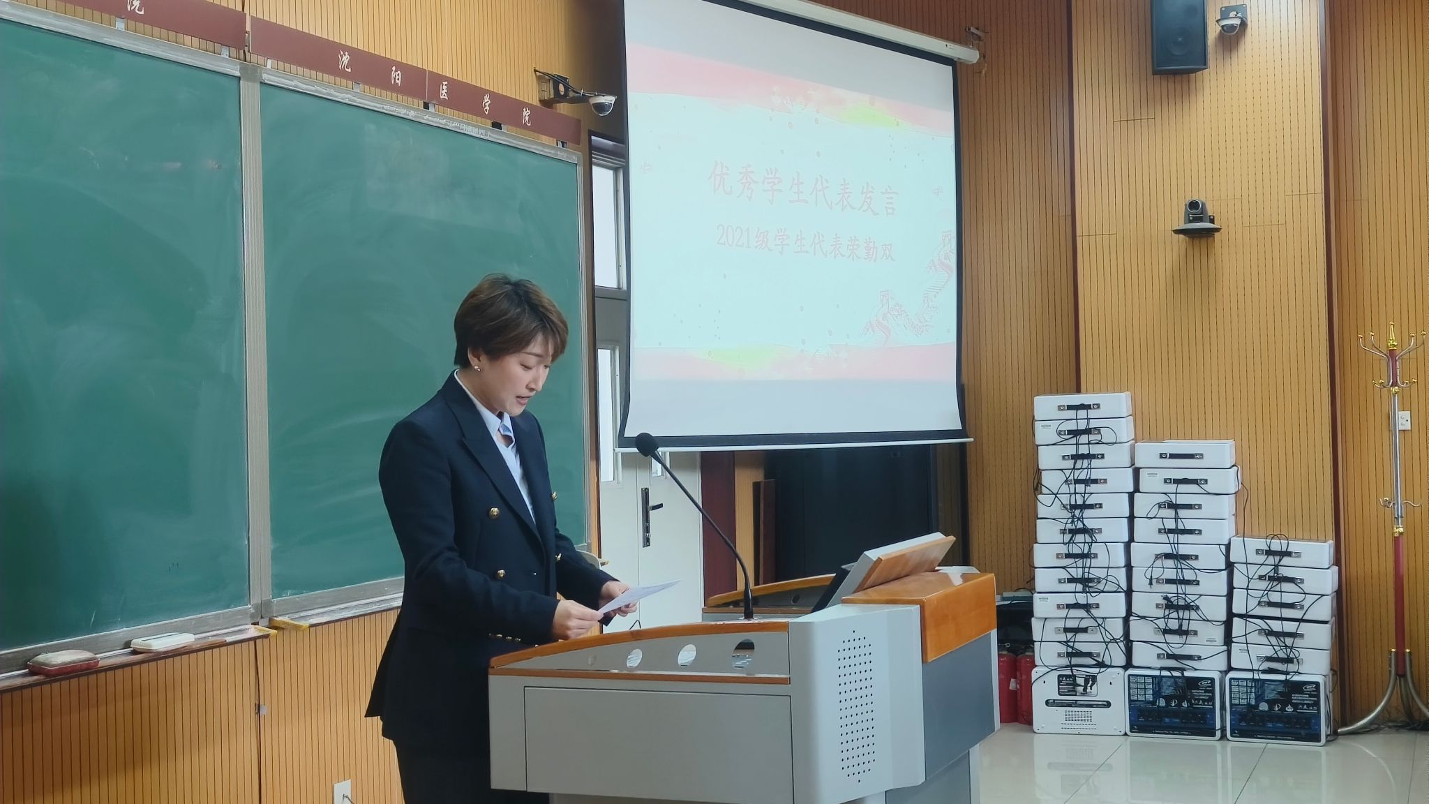 在教师代表发言环节,辅导员秦婧系统梳理了过去一年学院思政教育工作情况,并提出未来将进一步推动思政教育与学生学业、日常生活的深度融合;计算机与信息工程党支部书记刘洪从党建引领的角度,全面总结了“明德思政课堂”的实践成果,并表示未来将深化“双带头人”机制,着力打造“专业 + 思政”协同育人的创新范式。