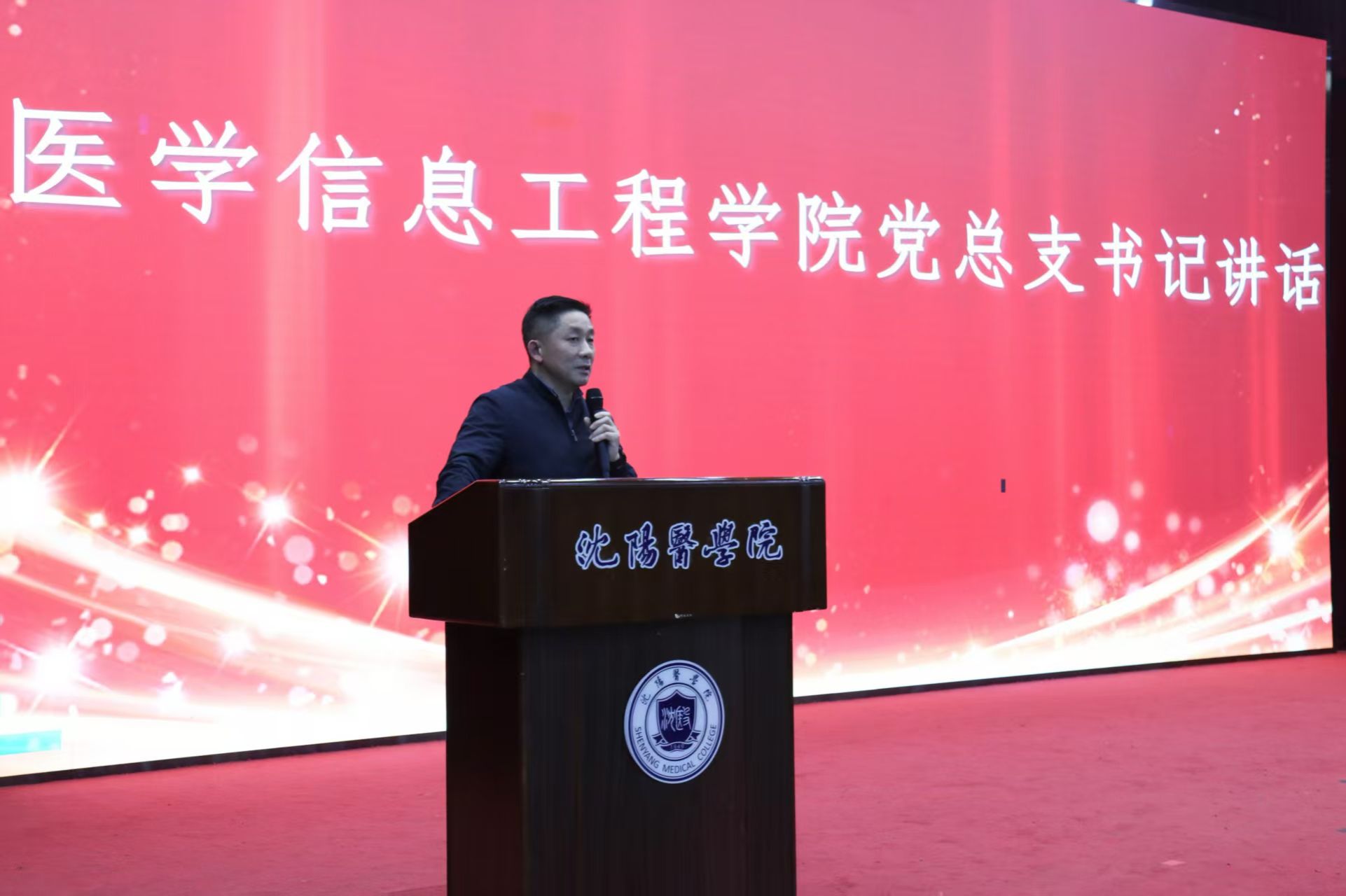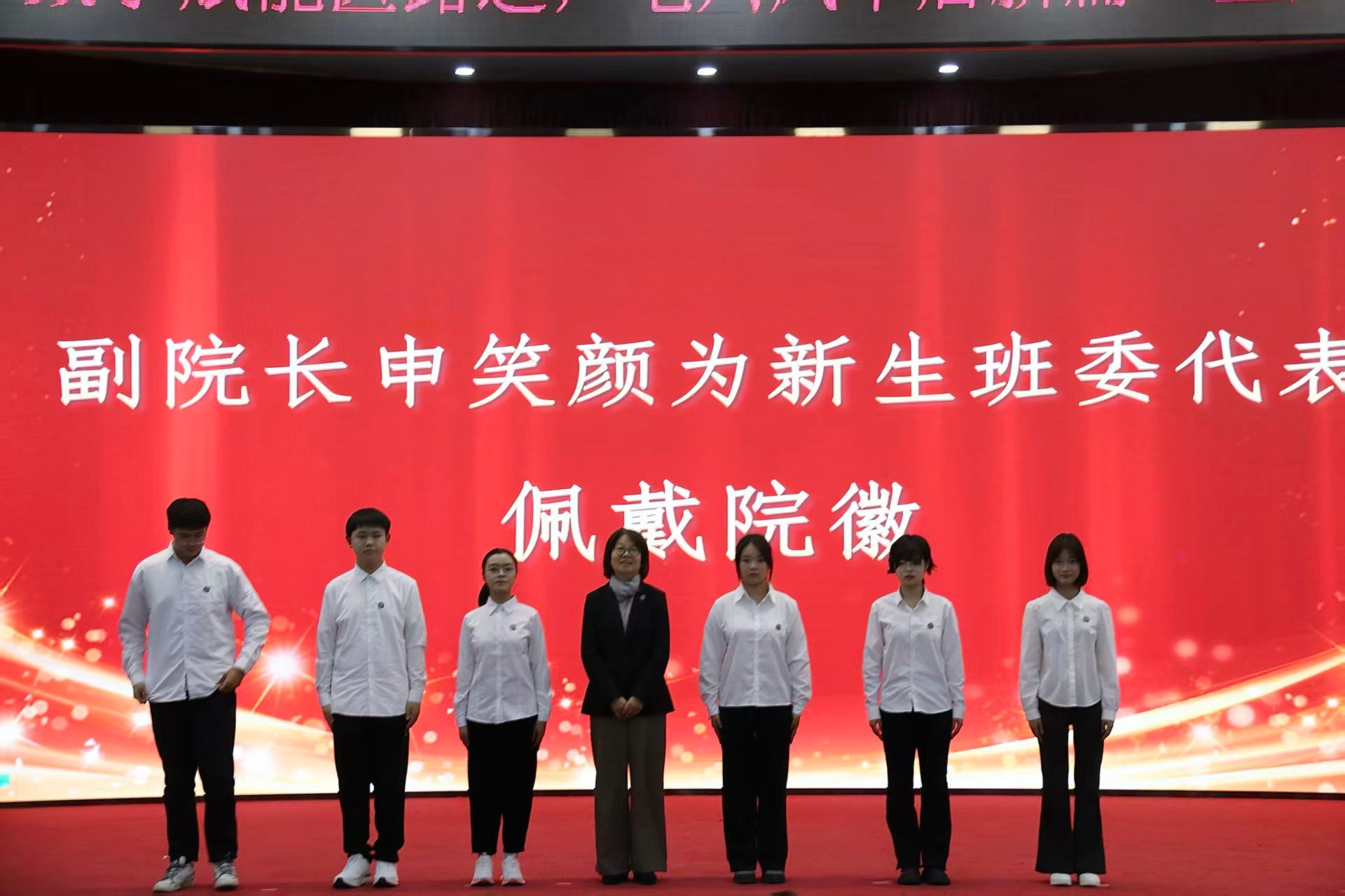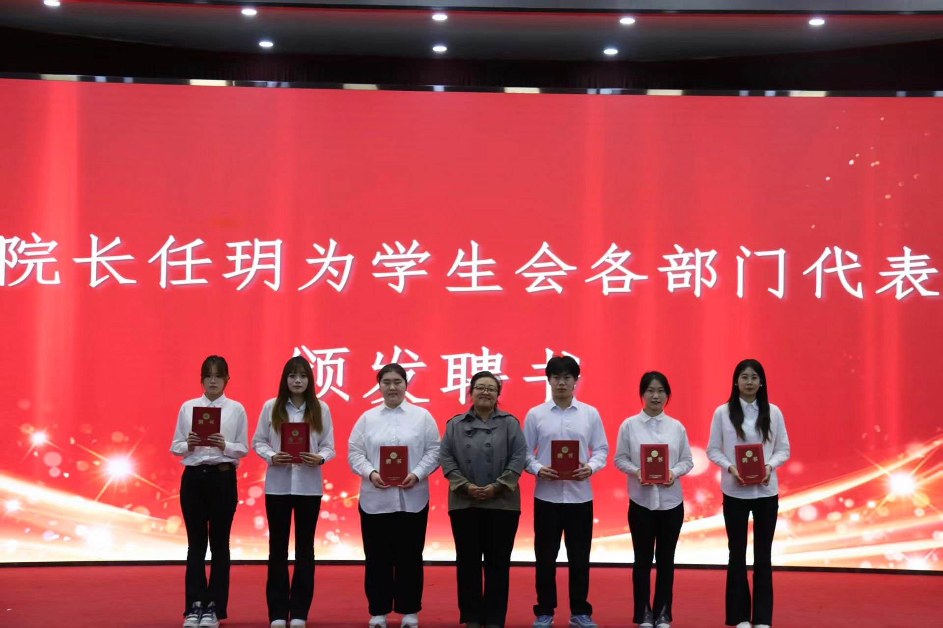 团学干部聘任仪式庄重热烈。学院领导为学生干部佩戴院徽、颁发聘书并授予团旗。在仪式的重要环节,党总支书记韦家勇寄语医信学子要修身立德、勤学笃行,鼓励大家在专业领域深耕钻研,在学生工作中勇于担当。这番讲话为学子指明了方向,也让聘任仪式成为一堂生动的大学生理想信念教育课,强化了学生干部的服务意识和桥梁作用。