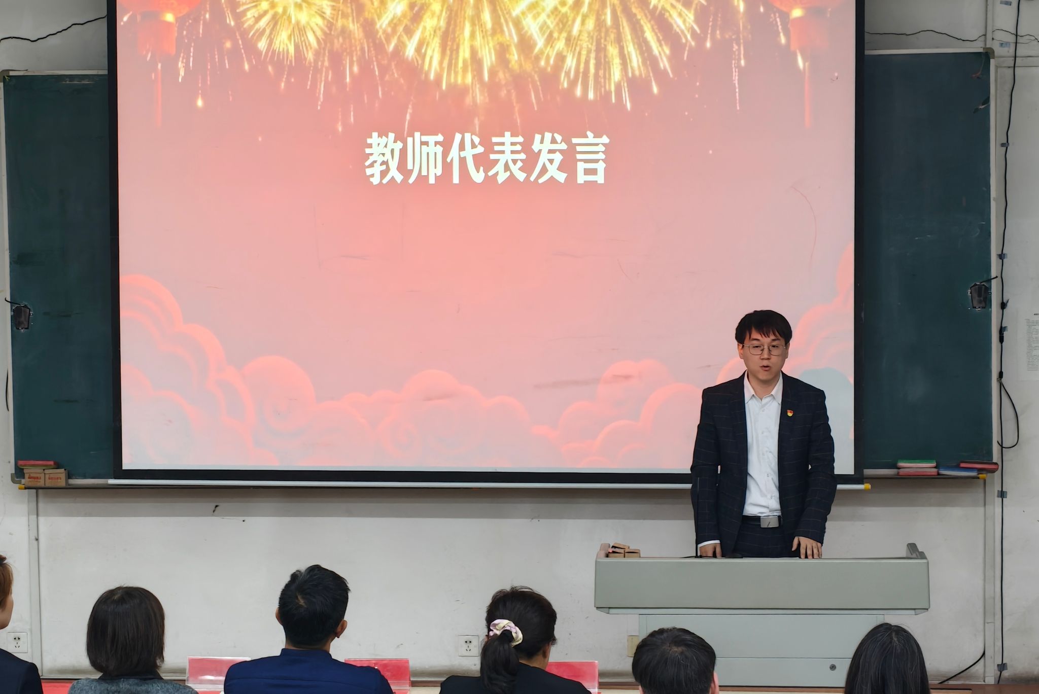 随后,教师代表和学生代表依次发言,徐健辉老师在发言中提出:希望大家在学习中互帮互助、主动交流,遇到学业难题可随时与老师沟通,以“共学共进”的氛围凝聚学风建设合力;优秀学生代表则结合“绩点提升”“学科竞赛”“互助学习”等实践,分享了“优学+乐学+勤学”的成长路径。